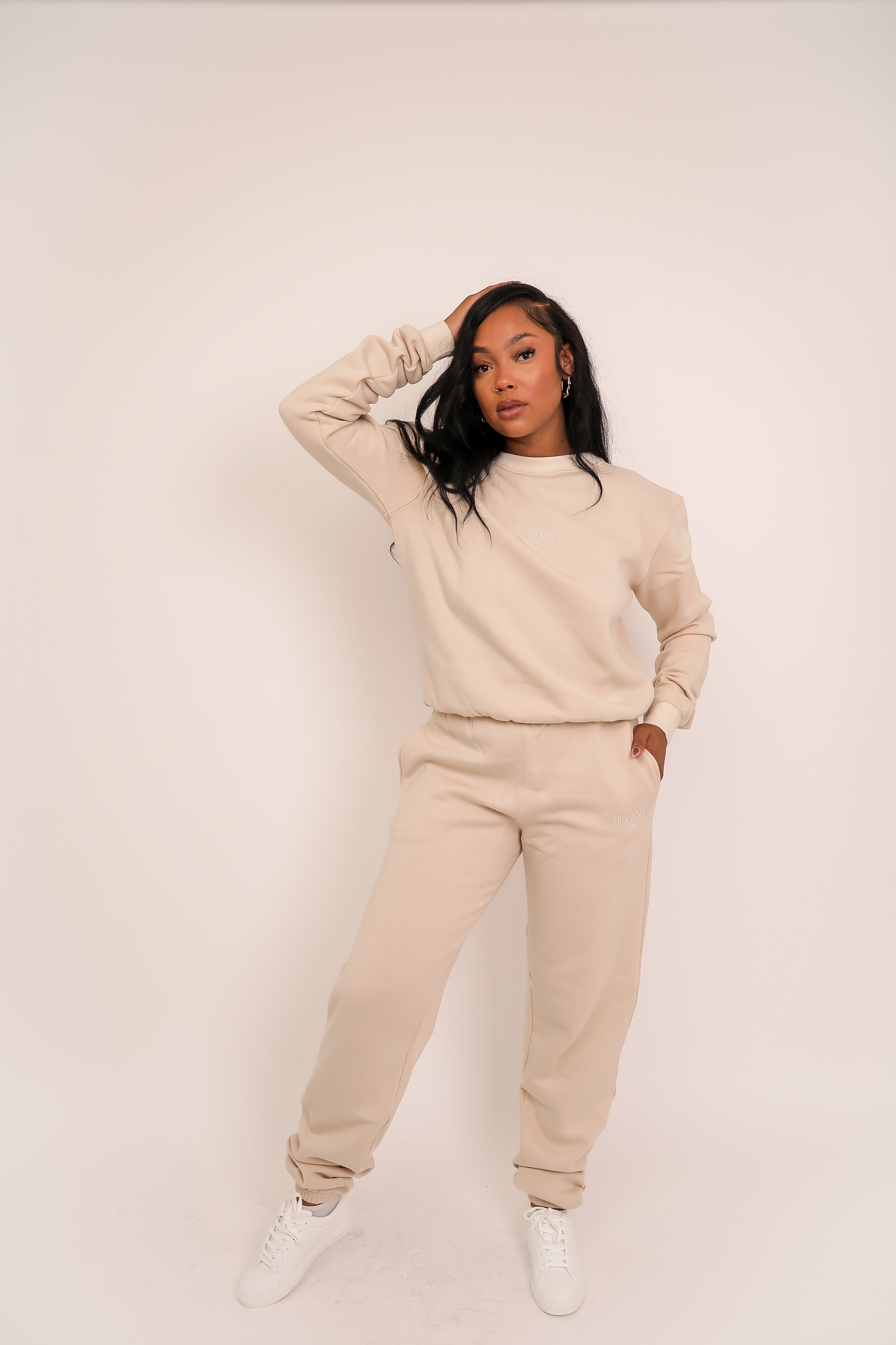 Pair the Nea Joggers with the matching sweatshirt for an effortlessly stylish co-ord look. Dress them up with chunky trainers and a statement coat, or keep it relaxed with sliders and a basic tee. Add gold hoops or layered necklaces to show that loungewear can be chic too.