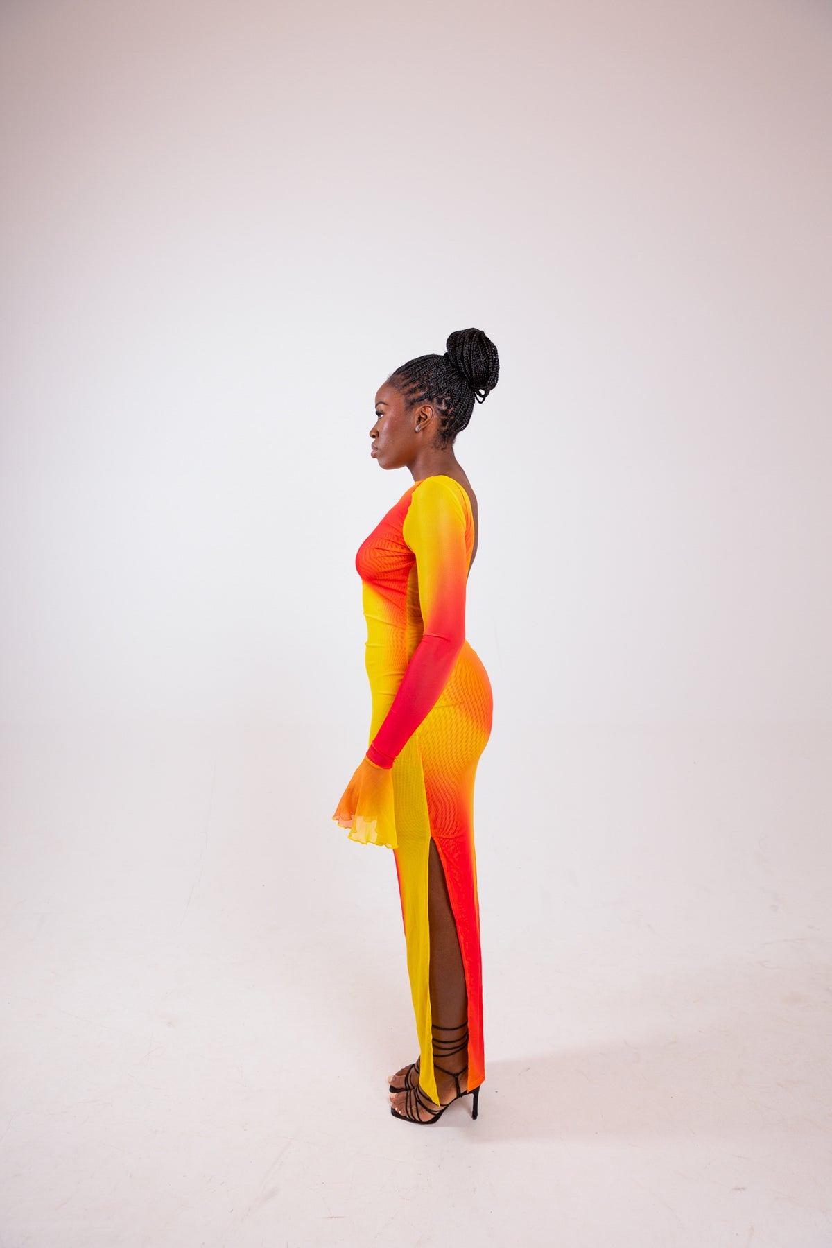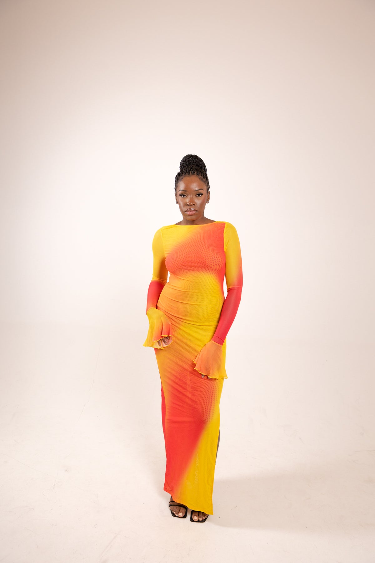 The Anasia Backless Maxi Dress in Sunset Yellow is for tall women who love to shine. This stunning semi-sheer mesh dress combines bold, sun-kissed colour with an alluring backless design that's equal parts elegant and daring.